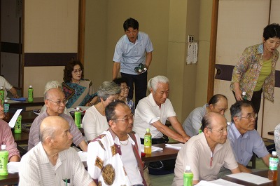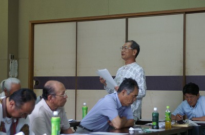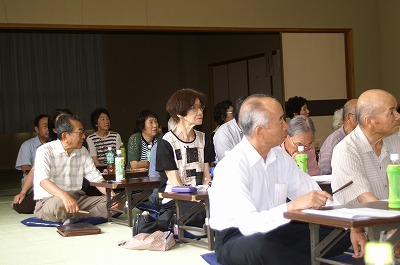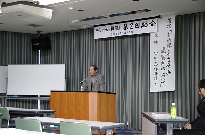 1.紙芝居 ささゆりの会 2.代表世話人あいさつ 増田 博 3.講演 不思議に命長なえて 九条の会・わかやま呼びかけ人 月山 桂 弁護士 4.意見発表 岩鶴氏(粉河鐘の話) 5.役員提案(規約、呼びかけ文、代表世話人、事務局)・承認 会員の拡大とカンパのお願い 6.歌と合唱 7.閉会挨拶 前粉河町顧問弁護士月山桂先生による講演「不思議に命長らえて」の要旨です。事務局の責任で編集しました。 9条1項戦争放棄と2項戦力不保持と前文の基本3原則の基本的人権保障、主権在民(民主主義)、平和主義(国際協調主義) のついてのお話で、戦争のない社会は日本人のみならず人類共通の願いであり、長年にわたって追い求めてきた理想であること。 日本の場合何百万もの自国民の命、世界で言えば一千万もの命の犠牲の上に築かれた理想。 これを改正することは歴史の流れ、人類の歩みに逆行するもので夢や理想を放棄しては文明の進歩は期し得ない。 改憲論者の主張は、ひとつとして認めえるものはない。仮に改正したとすれば近隣諸国に「再び日本は」「日本は再び・・・」の 不審と猛威を与えることになる。改憲論者も1項の改正はあきらめ2項の改正を計ろうとしている。つまり戦争はしないが軍隊を 持つことにしようということです。しかし戦争をしないならば軍隊を持つ必要がどこにあるのでしょうか。 軍隊ができるとはどういうことなのか、警察予備隊から防衛庁、防衛省その後陸軍省、海軍省、空軍省と組織は拡大します。 組織を維持するため、志願兵で兵員を補充できなくなると当然徴兵されます。実際徴兵しないと組織の維持は難しい。 軍隊は国の組織のひとつであるが、一度生まれてしまうとそれ自体自分の意思をもち拡大を続けようとします。 軍隊の協力なしに内閣の維持できず、歴史上実際5・15事件(犬養首相の襲撃事件)、2.26事件(首相等重用人物の襲撃、 殺戮、永田町一帯を占拠するというクーデター)、関東軍の満州の独立とわが国の領土化、華北5省への進出、南進政策の決定、 南仏印の占領、そして太平洋戦争への突入となりました。 一度軍隊を認めれば、軍は一人歩きする。しかも軍隊は武力を備えた権力(軍事力)の権化であって、制御しがたい団体になる。 軍隊は戦争を目的とする性格上、上命下従、絶対服従、組織内の個人の尊厳を否定する団体である。歴史上個人に死を強いた例として 硫黄島、ガダルカナル島、アッツ島、沖縄、片道の燃料しか与えない特攻隊(1機1艦の死の決行)があり。 個人の尊厳否定の例では、軍隊教育、初年兵教育、一般の団体が多く否定された。 日本の国民性として、気が短い、長く辛抱することが出来ない、交渉による解決が不得意、情に流されやすいがある。 現在日本を取り巻く国際紛争の種は多くあって、東シナ海、日本の経済水域の侵犯、尖閣列島の問題、ガス田の開発、竹島の占領、 北方4島の帰属等簡単に解決出来ない問題が多くある。 日本が軍隊を持つと上記の問題で軍隊があるのになんで我慢しなければいけないのか、すぐに軍事力を行使せよ。となるのは、 日本の国民性からして容易に想像できる。アメリカが命をはって日本を守ってくれているのに日本がアメリカに何も協力しないのは どうかという言い方が十分説得力があるのは、日本人が情に流されやすい性格をアメリカや日本政府が利用しているためである。 実際戦争を経験したものとして、戦争による苦痛を知らないものも戦争に巻き込まれることのないように意識を研ぎ澄ます必要かある。 憲法九条が改正されるかどうかは、日本国民の50%が支持するかどうかにかかっているいる。これは緊急かつ継続した問題です。